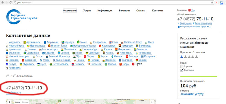 Указанный в «извещении» телефон 79-11-10 в интернете обнаруживается на раз. Но уже на сайте не менее мифической «Городской Сервисной Службы», «молодой и динамично развивающейся компании на растущем рынке установки и обслуживания приборов учета воды и в отрасли ЖКХ в целом».