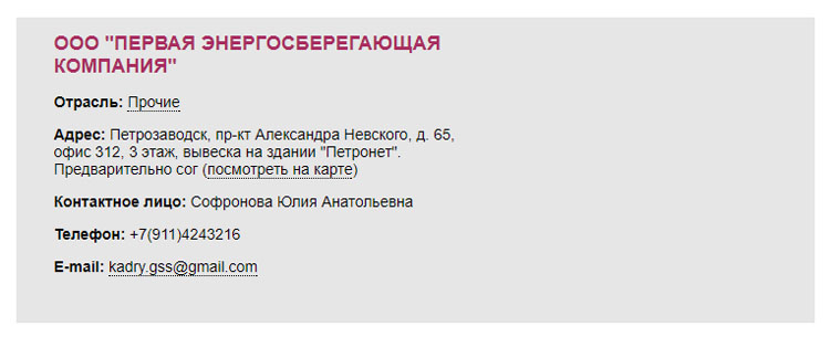 Эта самая Городская Сервисная Служба, разумеется, не указывает своего адреса, ИНН или любых иных официальных реквизитов (да и откуда им взяться, см. ниже). Правда, в разделе «Вакансии» указан мобильный телефон 8911-424-32-16 для тех, кто хочет стать «менеджером по продажам» в этой восхитительной конторе.