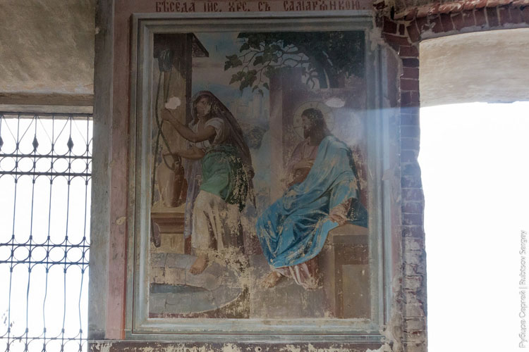 К негативным вещам можно отнести не только то, что подобная красота стоит никому ненужная и безвозвратно разрушается, но и то, что кто-то из местных решил использовать здание храма в качестве голубятни и развесил по всему периметру (хорошо заметно на фото общих планов) ведра с соломой, которые птицы используют как гнезда: