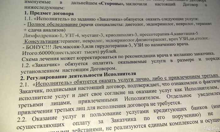 И приносит очередной договор от 6 ноября сего года. Точнее, целых два договора: первый на оказание услуг медицинского центра «Медикас», второй – кредитный, на 82 000 рублей. Как вовремя я приехал-то, оказывается!