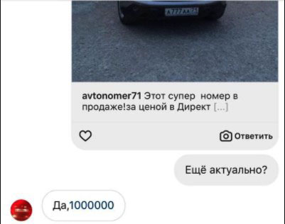 Объявление о продаже номера А 777 АА 71 размещено на странице в инстаграме.