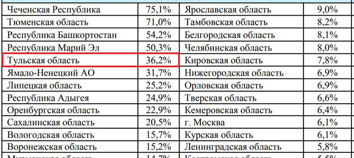 По информации федерального министерства финансов Тульская область занимает «почетное» 5-е место по доле налоговых льгот (36,2%) в объеме транспортного налога, опережая все другие, даже более богатые субъекты, входящие в ЦФО:
