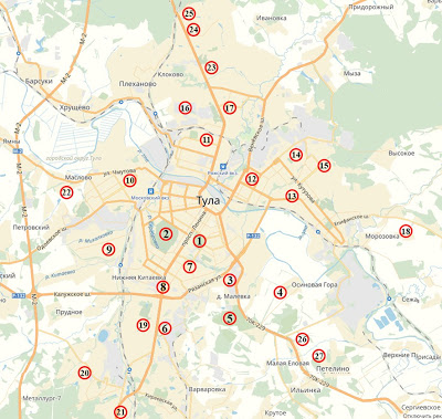 11-Червлёная, на выезде из Тулы в Москву, от улицы Горького до ручья Тростянка и Ряжской ж.д.