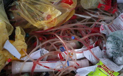 Шприцы, капельницы с кровью, медикаменты – всё это жгут в печи на открытом воздухе