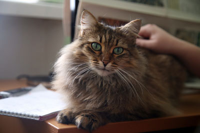 В кабинете у главного хранителя живет настоящая королева местных кошек – изумрудноглазая Пушистик, или просто Пуся. История ее появления в усадьбе тоже грустная – холодной зимой ее вместе еще с несколькими котятами подбросили под житню. Котята плохо пережили холода, несколько из них погибли. Пуся долго болела, но стараниями Элеоноры Петровны выжила, и теперь она – полноправная хозяйка небольшого кабинета хранителя.