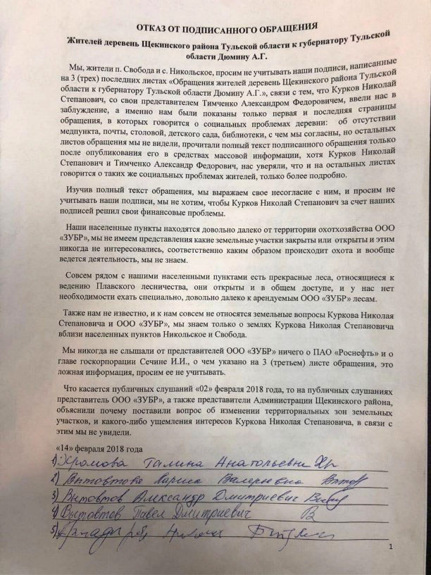 Напомним, 17 февраля в СМИ появилась информация о том, что съемочная группа Центра управления расследованиями была заблокирована на одной из дорог Щекинского района сотрудниками охотничьего хозяйства «Зубр».