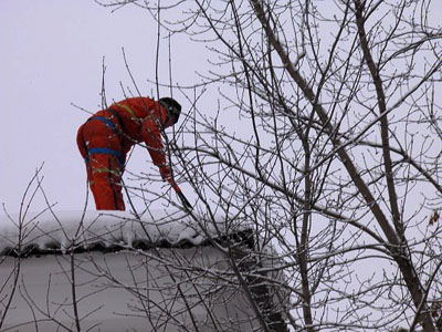 Утром, часов в 8, прибыла бригада промышленных альпинистов-гастарбайтеров и по распоряжению начальника ЖЭУ №6 вознеслась на нашу, потом и кровью выстраданную, крышу, покрытую шифером, для очистки ее от снега.