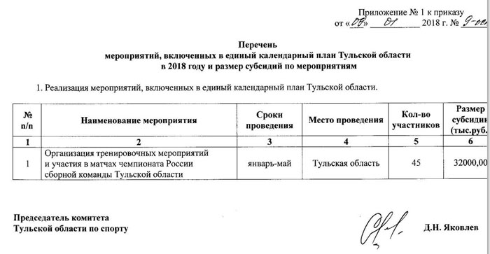 Интересно, что в прошлом году 75 млн бюджетных рублей для мифической сборной по футболу были выделены  через «Федерацию велоспорта-шоссе, велоспорта-трека, велоспорта-маунтинбайка, велоспорта-ВМХ Тульской области«.