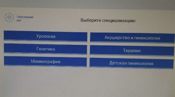 Прихожу. Мне естественно маммографию не делают и отводят к маммологу. Тот дает направление на УЗИ и говорит записаться к ней с помощью терминала на следующий прием.