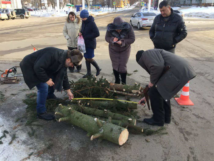 В Суворове монтировали установленную на площади новогоднюю ёлку с помощью не того крана, который был прописан в контракте.