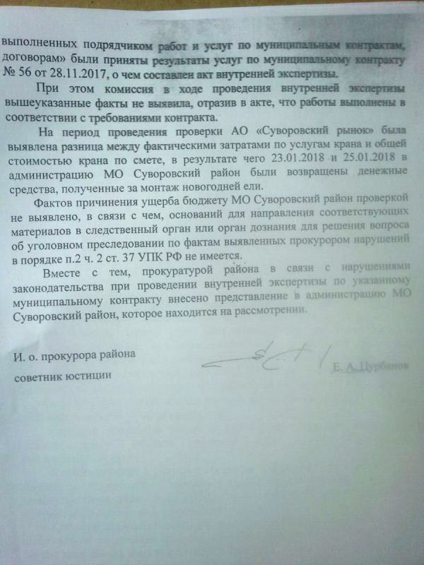 Как сообщили в прокуратуре, оказалось, что на момент проверки денежную разницу уже выявили, а средства в конце января вернули в бюджет, поэтому фактов причинения ущерба бюджету нет, как нет и оснований для передачи материалов в следственный орган. Но в администрацию Суворовского района внесут представление.
