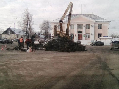 В Суворове монтировали установленную на площади новогоднюю ёлку с помощью не того крана, который был прописан в контракте.
