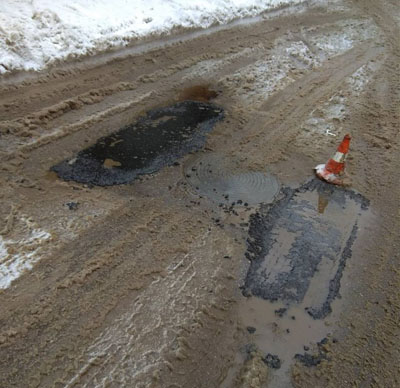 Не ямы это вовсе, а естественные ограничители скорости автомобилей. Убедился лично — больше сорока км/ч ну никак не разогнаться!