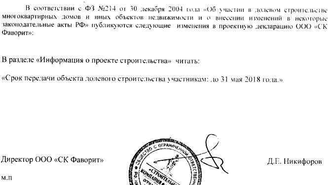 Тем не менее, последние внесенные в проектную декларацию изменения отодвинули дату на 31 мая 2018 года.