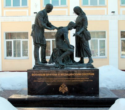 Памятник Подвигу врачей и медсестер в годы Великой Отечественной войны изготовлен на средства Российского военно-исторического общества, автор – скульптор Виталий Шанов.