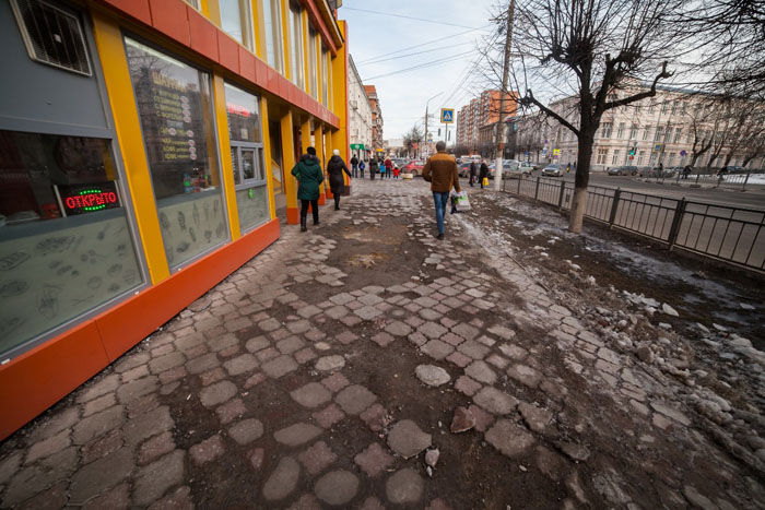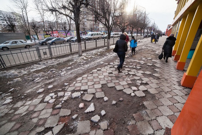Только каким местом это относится к городу? Это же вроде собственники магазинов выкладывали. А там всё согласно законам рынка — как можно дешевле. А дешевую плитку у нас льют Джамшуты из песка, цементной пыли и соплей.