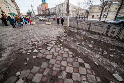 Только каким местом это относится к городу? Это же вроде собственники магазинов выкладывали. А там всё согласно законам рынка — как можно дешевле. А дешевую плитку у нас льют Джамшуты из песка, цементной пыли и соплей.
