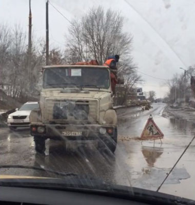 «- На пересечении Московской-Шахтеров неделю назад такое было, утром закидали, вечером весь щебень по дороге валялся… вчера там же заливали асфальтом прям в лужи, а вы говорите первомайка.