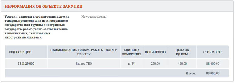 Например, согласно извещению от 26.05.2017 на портале госзакупок «Сервис» является заказчиком услуг по вывозу твердых коммунальных отходов в гостиничном комплексе «Богучарово», причем объем услуг по вывозу ТБО – 220 куб. м: