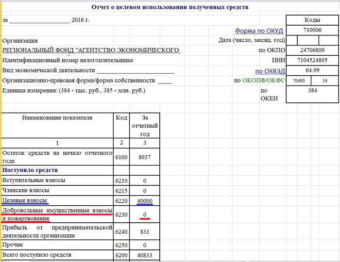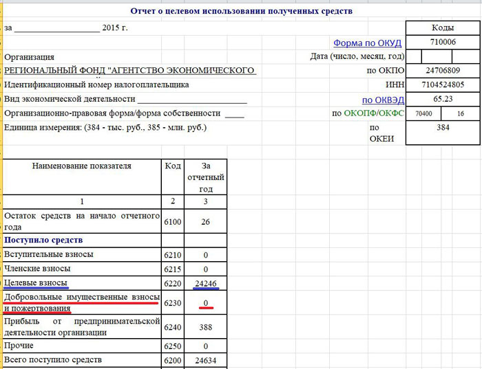 Но есть и прямые доказательства исключительно бюджетного финансирования фонда. Это бухгалтерская отчетность фонда за 2014-2016 гг., а конкретно, отчеты о целевом использовании полученных средств.