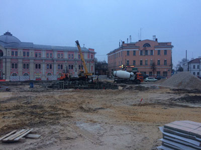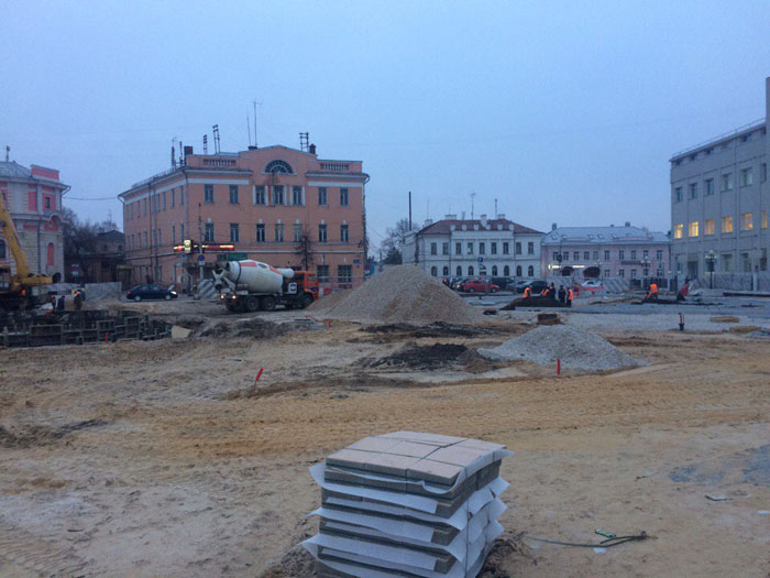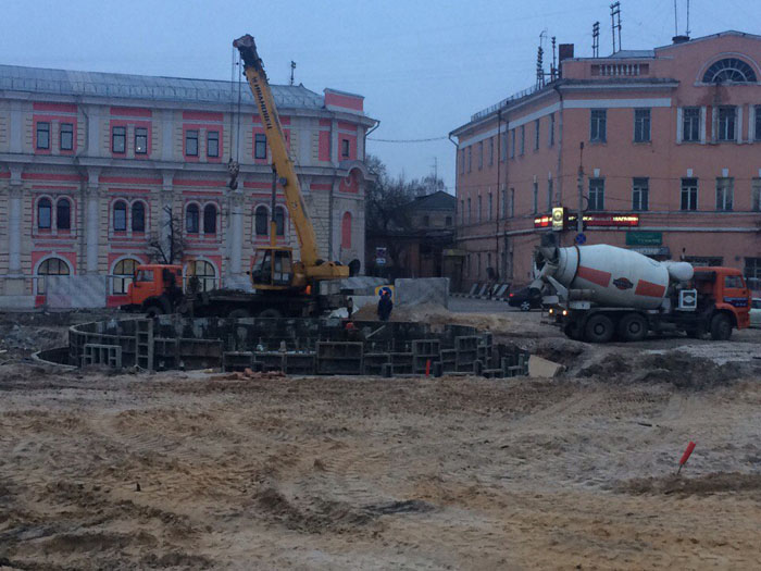 Рабочие приступили к формированию фонтана на Крестовоздвиженской площади Тулы. Также на этом участке будущей «Тульской набережной» уже высадили деревья.