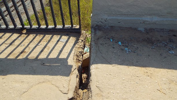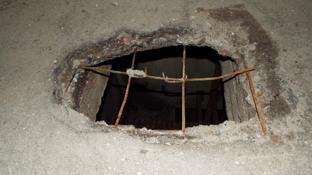 Огромная дыра, прикрытая тонкой арматурной сеткой.