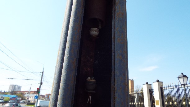 6) На выходе из подземного перехода в сторону Ротонды есть полу-разобранный столб освещения, в котором открыт доступ в остаткам электроприборов. Как раз на уровне любопытных детских рук!
