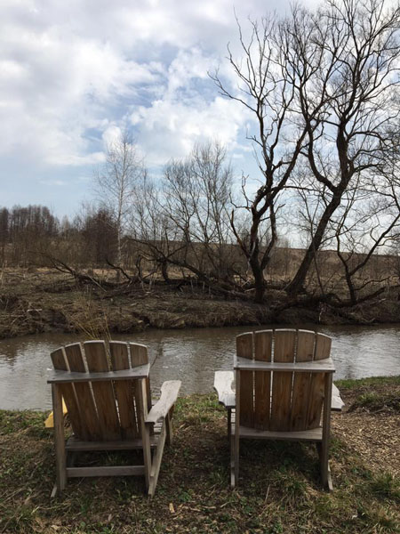 2. Здесь можно много и в удовольствие гулять по окрестностям. Маршруты позволяют. Можно конечно и на велосипеде перемещаться, но пешком можно больше разглядеть. Особенно весной, когда хочется вглядеться в первую зелень и в оттенки голубого неба. В непосредственной близости от гостиницы находится ферма «Марк и Лев», где можно купить свежих продуктов и посмотреть на животных. В 2 км пешком через реку Скнига – музей-усадьба БолОтова – оказывается ударение правильно ставить именно так. В 2,8 км – Церковь Александра Римского в селе Ченцово. Но обо всем по порядку.