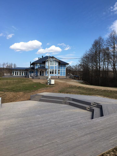 2. Здесь можно много и в удовольствие гулять по окрестностям. Маршруты позволяют. Можно конечно и на велосипеде перемещаться, но пешком можно больше разглядеть. Особенно весной, когда хочется вглядеться в первую зелень и в оттенки голубого неба. В непосредственной близости от гостиницы находится ферма «Марк и Лев», где можно купить свежих продуктов и посмотреть на животных. В 2 км пешком через реку Скнига – музей-усадьба БолОтова – оказывается ударение правильно ставить именно так. В 2,8 км – Церковь Александра Римского в селе Ченцово. Но обо всем по порядку.