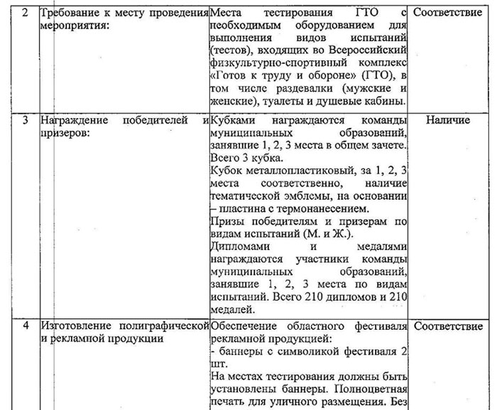 Для сравнения объем информации в случае, когда комитет по спорту проводит реальный конкурсный отбор. В приказе, которым объявляется конкурс, не только четко указано наименование услуги и размер субсидии, но имеется расчет субсидии по статьям расходов, а также подробно определены общие требования к услуге: