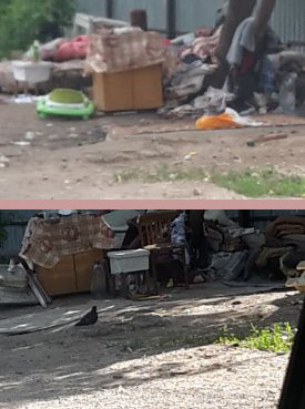 С расположенного рядом мусорного контейнера бомжи перемещают мусор к месту их пребывания. Из-за большого количества мусора в доме появились грызуны. Сотрудники отдела полиции периодически приезжают на вызовы, но для устранения данной проблемы у них нет законных оснований.