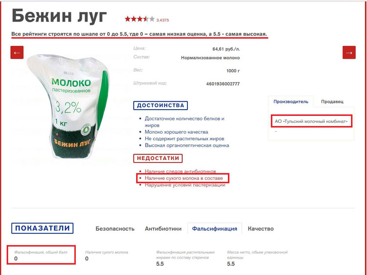 Согласно результатам исследования молоко питьевое пастеризованное с массовой долей жира 3,2 % под торговой маркой «Бежин Луг», произведенное АО «Тульский молочный комбинат», имеет существенные недостатки: