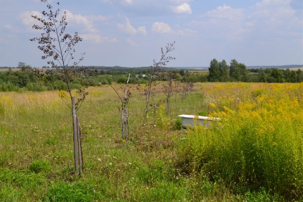 2018 г.: Что же стало с проектом сейчас? Больше половины саженцев засохли, оставшиеся плохонько, но цвели весной, хоть и заросли травой «по самые брови»…