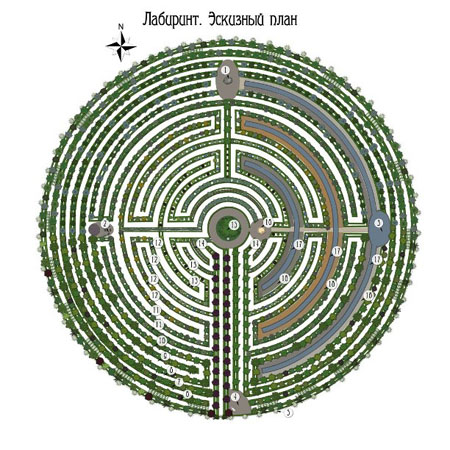 – Анна (Вититина. — Прим. ред.) попросила оформить красиво и красочно схему лабиринта, которую она мне прислала в виде чертежика в ландшафтной программе, — поделилась Екатерина с корреспондентами Myslo, — Я сделала на ее основе эскизный план зонирования. Без уточнения растений, без дополнительных инженерных чертежей, только эскизы. Работала в качестве волонтера, без оплаты. Это было зимой 2016-2017 гг., полтора года назад. Больше проекта я не касалась.