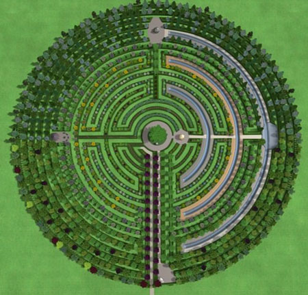 В презентациях лабиринта «Лес межнационального единства» используются эффектные картинки, на которых объект выглядит исключительно красиво. Однако эти изображения являются лишь фантазийными ЭСКИЗАМИ, сделанными полтора года назад молодым талантливым дизайнером Екатериной Харитоновой (ландшафтная студия «Живая картина»).