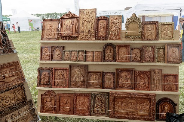 В одном из шатров расположились местные умельцы ковки и резьбы по дереву. Губернатор с интересом осмотрел выставку резных картин.