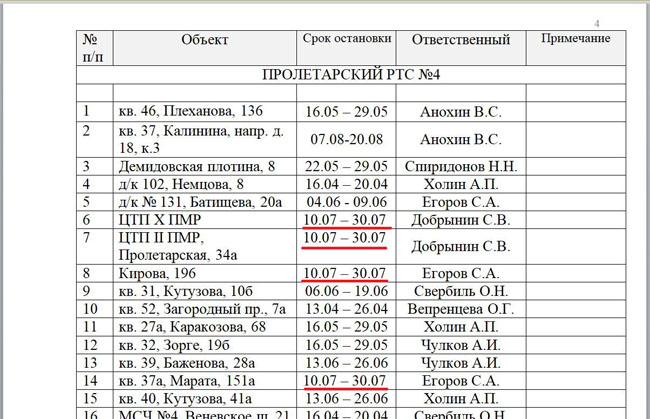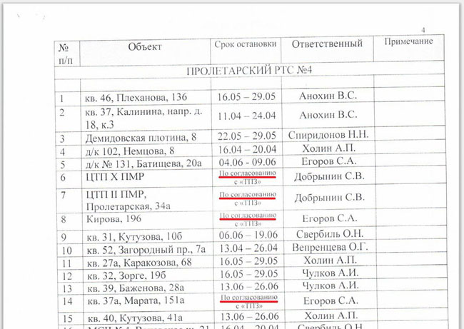 Очевидно, что администрация Тулы не выполнила этот пункт приказа: не по всем котельным указаны сроки (Пролетарский район), а некоторые установленные в графике сроки (Зареченский район) прямо противоречат федеральным и областным нормам.