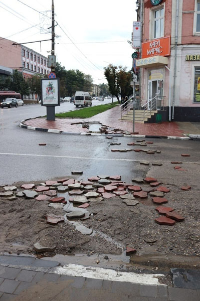 На пересечении проспекта Ленина и улицы Каминского смыло тротуарную плитку (уже не первый раз), на другой улице провалился асфальт.В городской администрации объявили о мониторинге состояния улиц и призвали жителей информировать о местах подтопления.