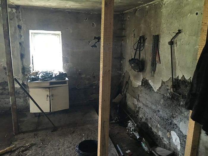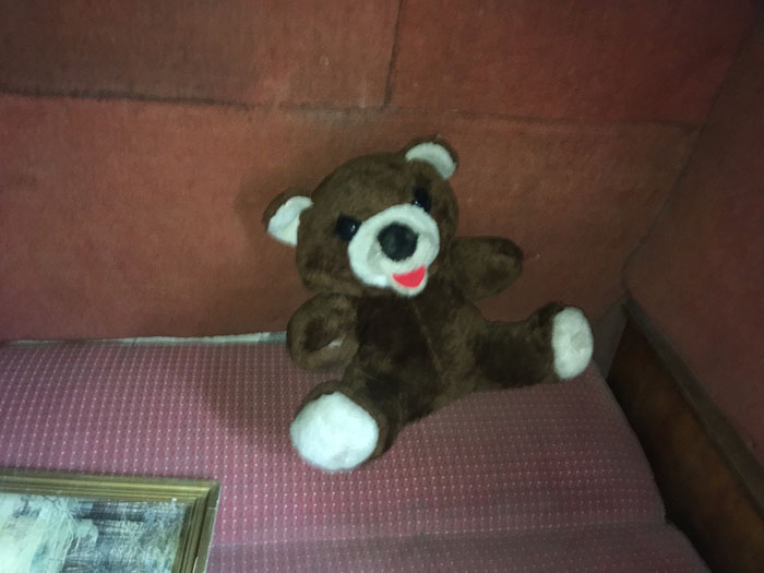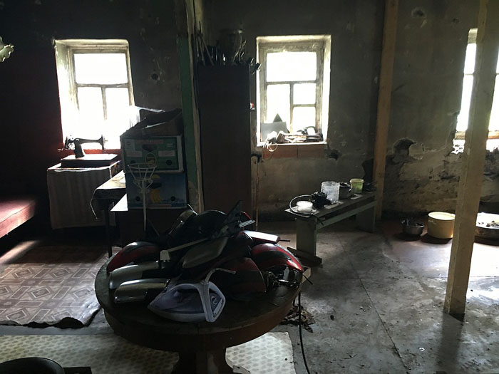 Со всего размаху барабаним кулаками по воротам. Тишина. Обходим участок вокруг. Красота! Забор был только с одной стороны. С обратной — незащищенный дом. И дверь — нараспашку. Юркаем внутрь. А там — прям пыточная камера. 10 видов утюгов, топор, кочерга, лом, цепь на гвозде и (неожиданно) плюшевый мишка на диване. Так увлекаемся разглядыванием этого набора бывалого садиста, что не сразу обращаем внимание на шорохи в углу.