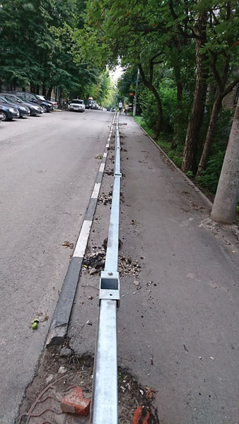 На ул. Л. Толстого ограждения вбили на расстоянии сантиметров 30 от бордюров, сузив и без того не широкую пешеходную дорожку.