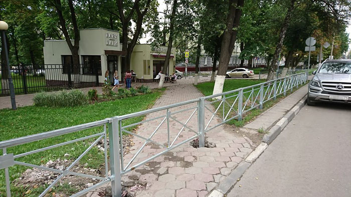 — Теперь на этом тротуаре будет не разъехаться двум коляскам или людям с ограниченной мобильностью, — сетует читатель. — А на перекрёстке ул. Свободы и ул. Каминского при мне чуть не сбили ребёнка, потому что из-за забора стало плохо видно пешеходный переход — всё мельтешит, особенно при движении. Помимо этого, при установке ограждений уродуют свежий асфальт и плитку! Заборы — это пережиток, не должно их быть в городе! Новая набережная — отличный этому пример! А так из красивого района города устраивают кладбище в загородках!..