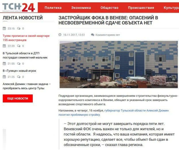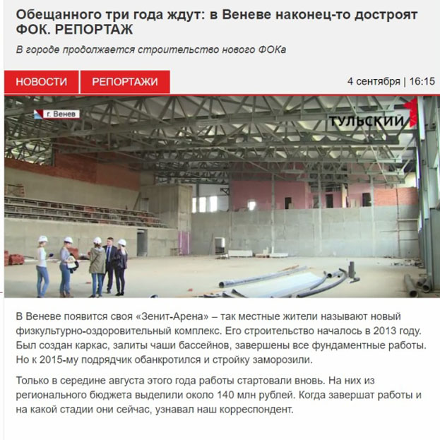 Строительство Веневского ФОКа начинает походить на скандальное возведение «Зенит-арены»