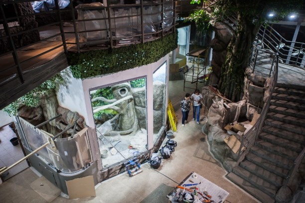 Подрядчики — специализированная организация «Мосбиоинжиниринг» — уже смонтировали основные системы жизнеобеспечения, построили вольеры и бассейны. Остались отделочные работы: где-то роспись, где-то покраска, натяжные потолки и стекла в некоторых вольерах. Искусственные растения уже смонтированы, живые готовятся к посадке.