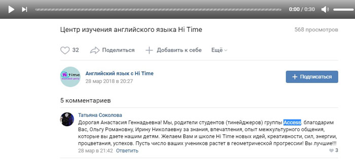 В комментариях под видеосюжетом – благодарность родителей «студентов (тинэйджеров) группы Access».