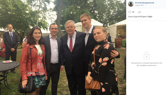 Например, Мундриевский с группой школьников выиграл в рамках одного из проектов «Project Harmony» поездку в Штаты в Форт-Россу в июле прошлого года. Перед поездкой он опубликовал на своей страничке в соцсети фотографию из резиденции посла Штатов: он, школьники и посол Джон Теффт на фоне какого-то, наверное, важного приема.