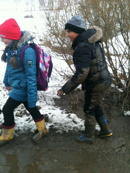 В прошлом году в Сеть попало видео, на котором мальчик поскользнулся и нырнул в ледяную лужу. Они на протяжении всех трех километров – обычное дело. С началом осени и весны ухабистую грунтовую дорогу размывает так, что автомобилисты не рискуют на ней появляться. А дети в резиновых сапогах совершают героические марш — броски пять дней в неделю. Путь к знаниям для 20 отважных, половина из которых – младшие школьники, слишком дорого обходится…