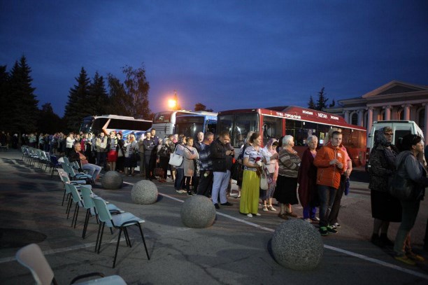 Среди желающих попасть в храм не только туляки, но и жители соседних регионов – Московской области, Орла, Калуги, Рязани, а также отдалённых районов Тульской области. Ввиду большого потока паломников администрация приняла решение организовать для них условия для отдыха – на площадь привезли стулья и передвижной буфет, в котором каждый может согреться горячим чаем.