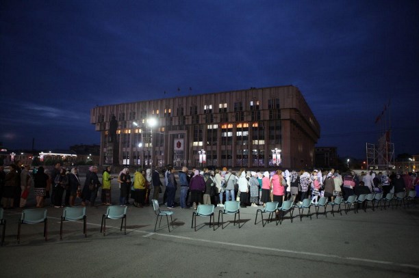 Поклониться привезенной из Греции святыне приезжают жители из других регионов России. Многие стоят под открытым небом несколько часов подряд.