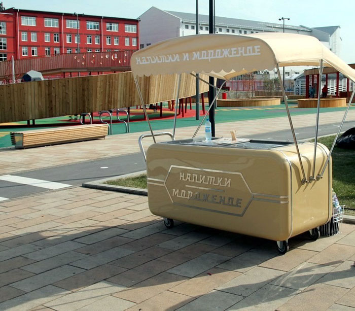 Но обольщаться не стоит, ценник у этих лотков просто конский. Рожок мороженого — 110 руб. Тогда как в обычном лабазине — 60 руб. А в киосках вообще — 42 руб.