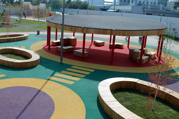 Детскую площадку про которую я писал в прошлый раз сделали как надо — покрыли разноцветной резиновой крошкой. Прям бользам на душу.